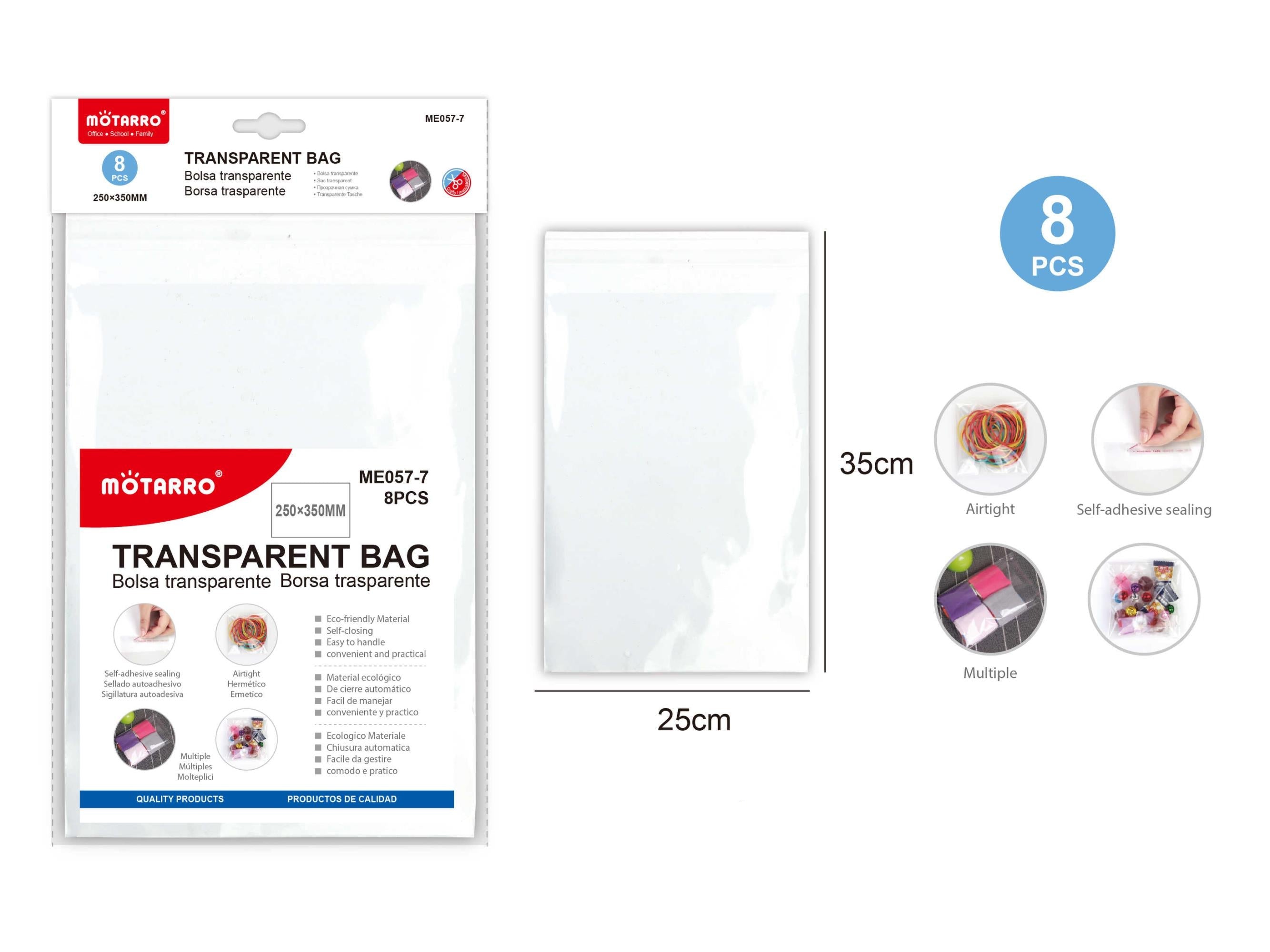 BOLSA CON CIERRE TRANSPARENTE 25*35 8PCS