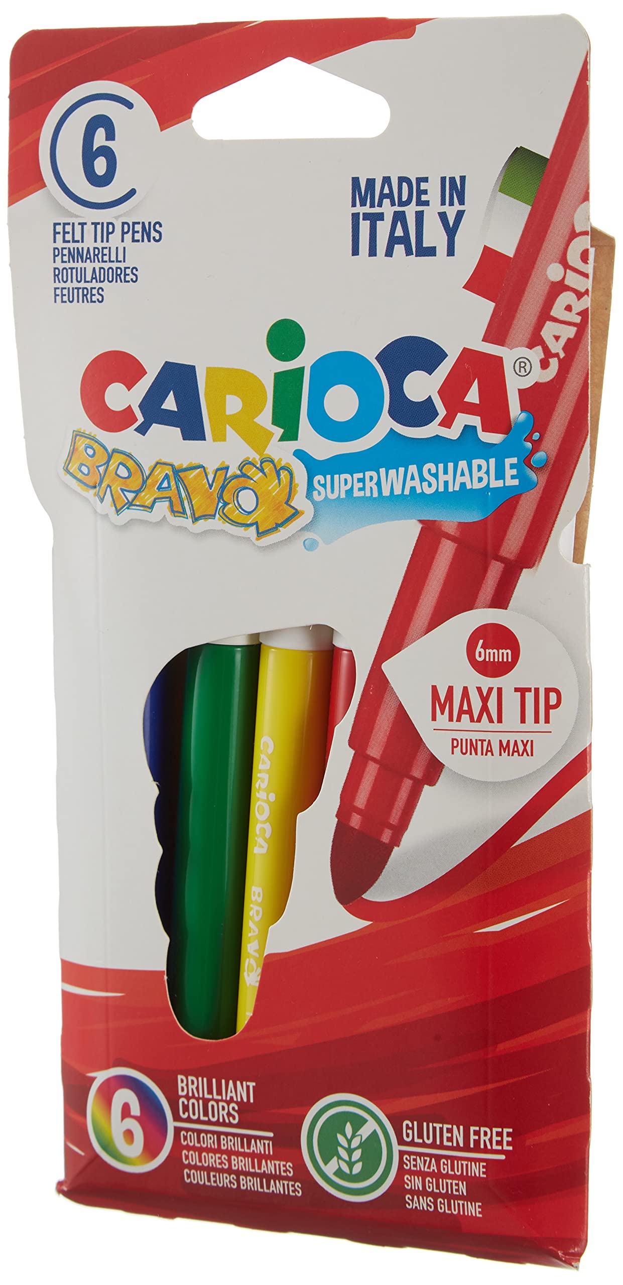 Disfruta de la escritura y el dibujo sin preocuparte por los materiales. Este set de 6 rotuladores Carioca Bravo extra-gruesos en diversos colores te ofrece una gran punta redonda de 6mm ideal para colorear y resaltar tus ideas. ¡Haz tus proyectos más llamativos con estos rotuladores de calidad!