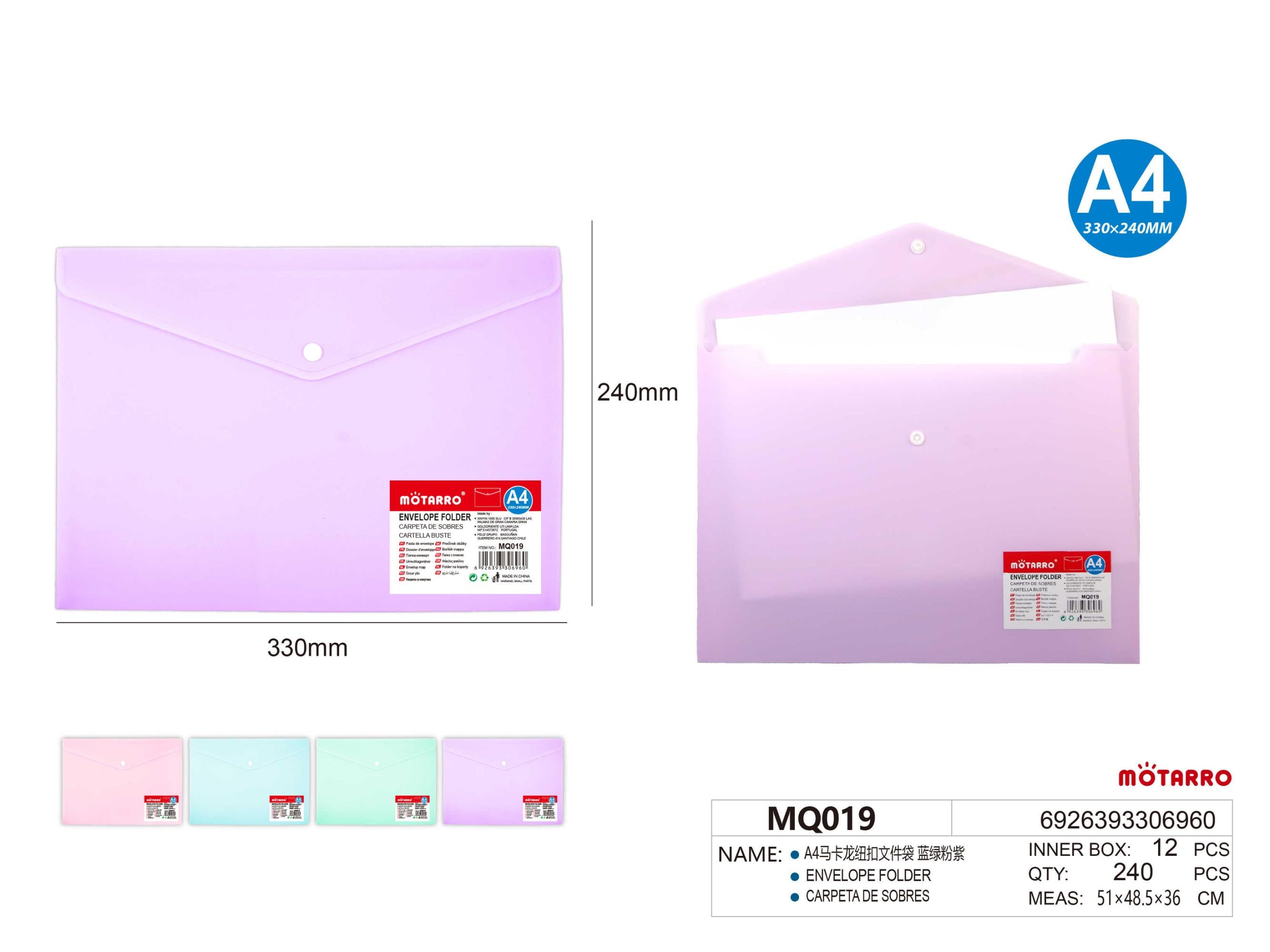 CARPETA DE SOBRE A4 COLOR PASTEL