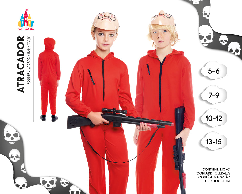 Consigue los mejores resultados con el disfraz de atracador tamaño 7-9. Es creado con los materiales de mayor calidad, lo que ofrece una tela duradera y suave que asegura una larga duración. Además, el disfraz viene con una mascarilla para la cara y un cinturón de pelo sintético. ¡Completa tu look con el disfraz de atracador!