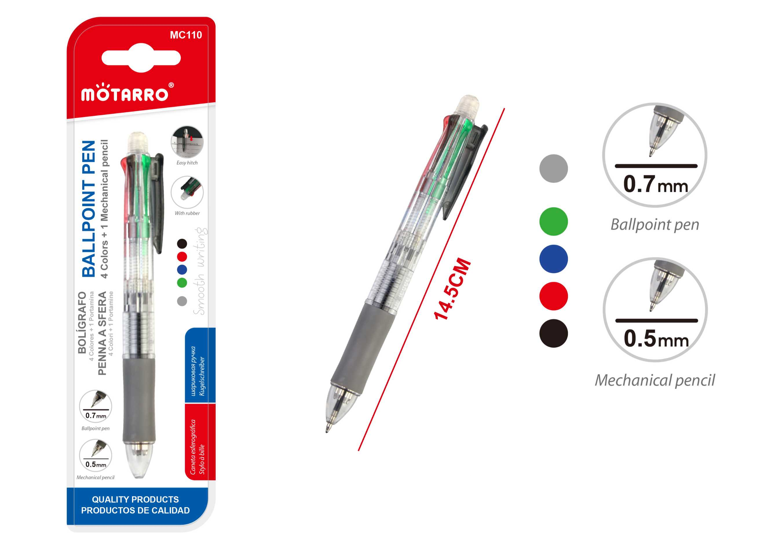 BOLIGRAFO 4COLOR 0.7MM+PORTAMINA 0.5