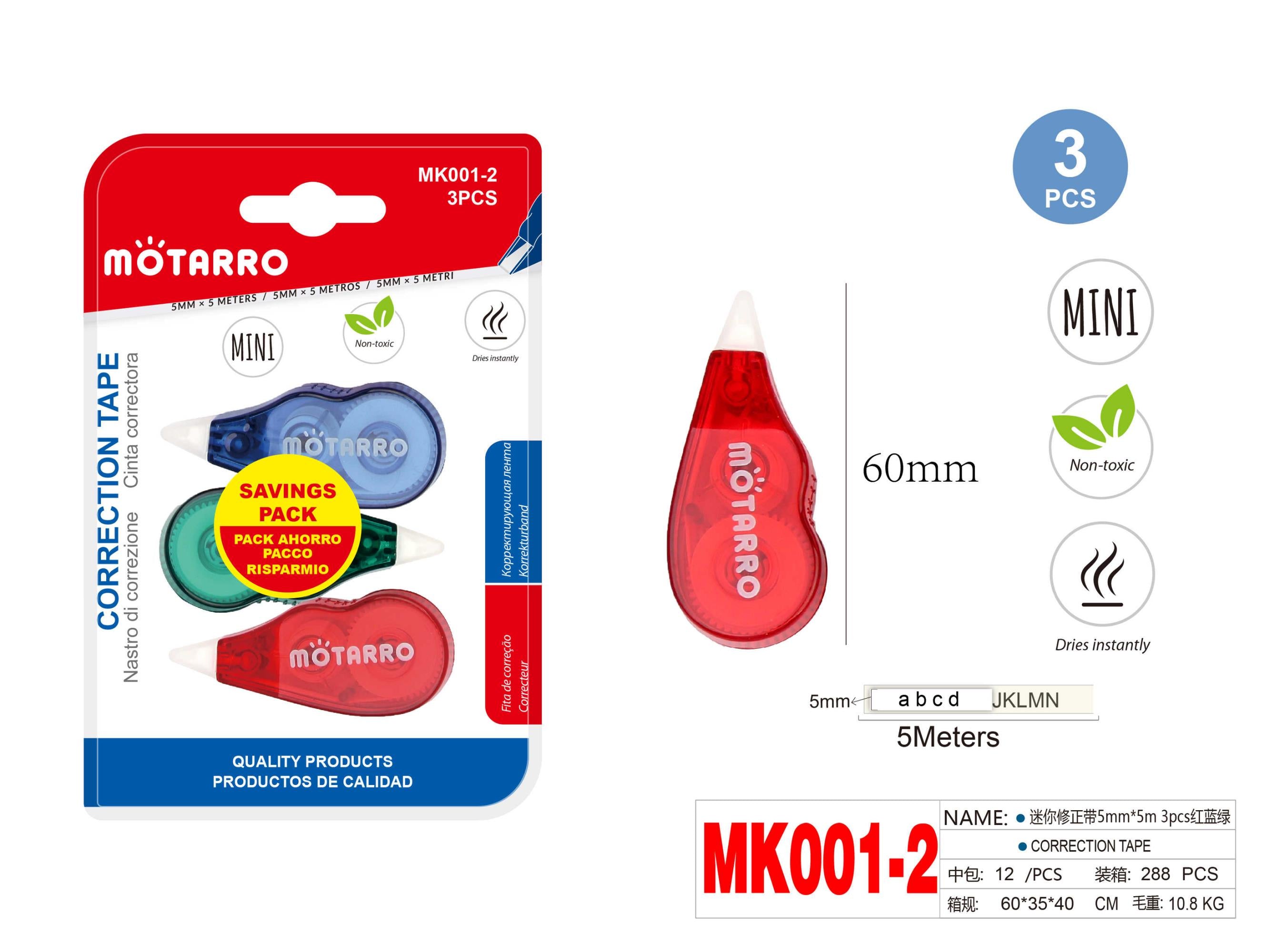 PACK 3 CINTA CORRECTOR 5MM*5M