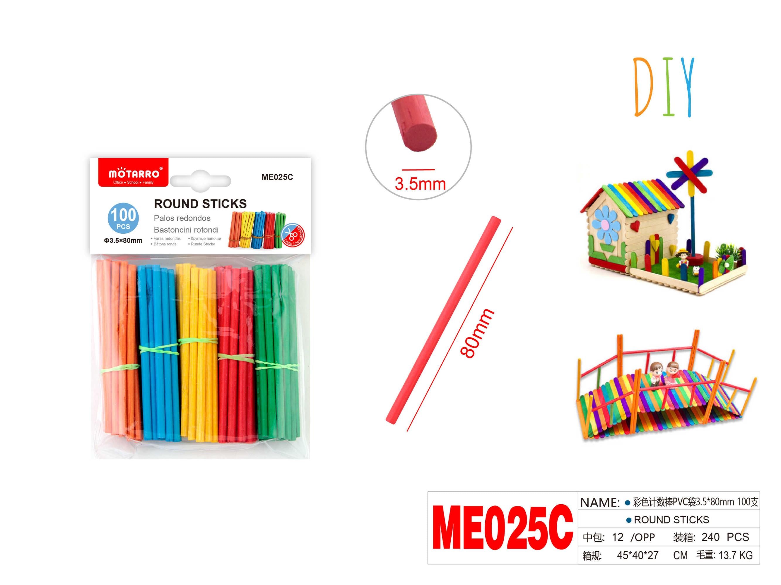 PALITOS DE MADERA REDONDO 3.5*80MM 100PCS C
