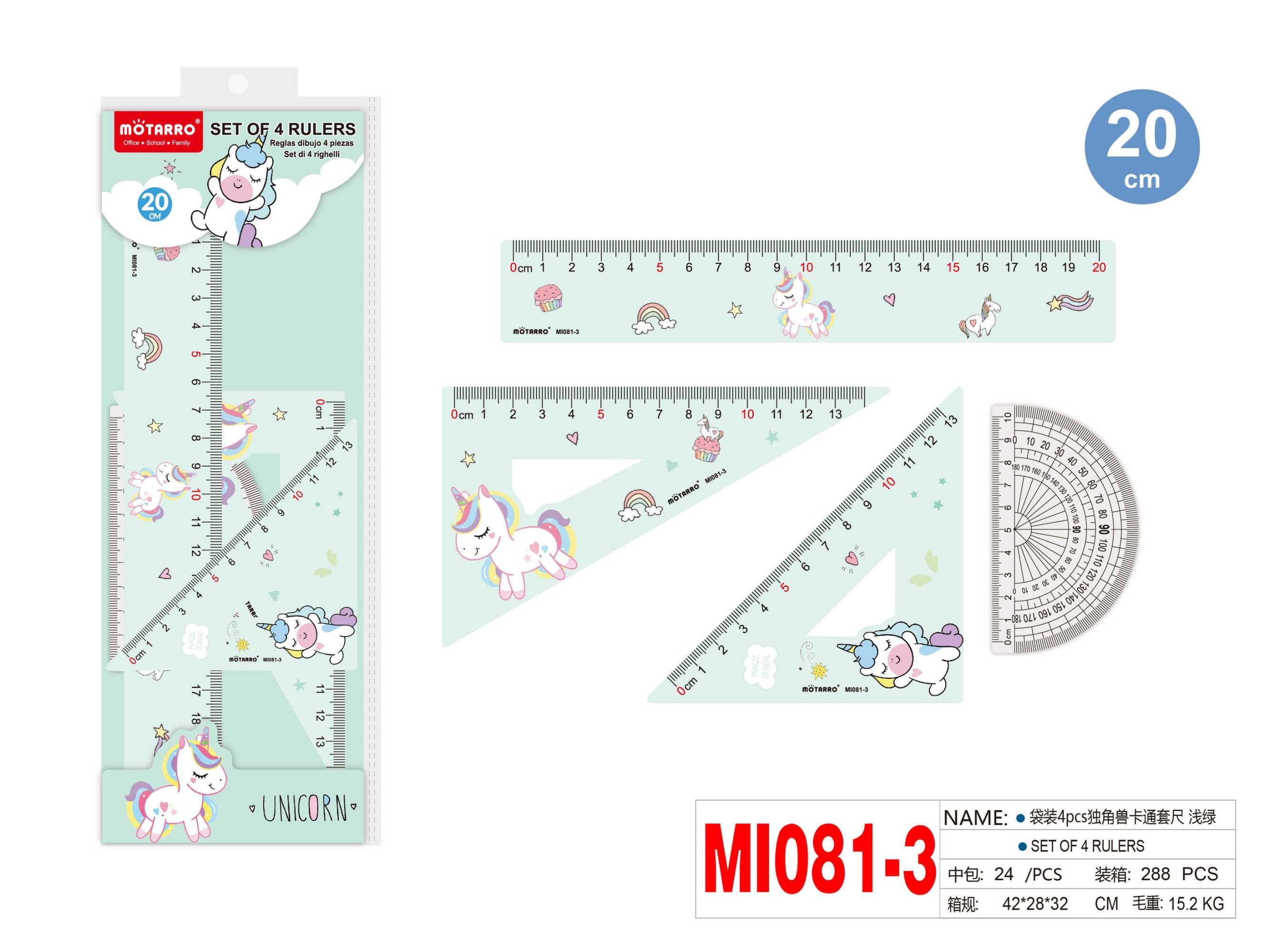 REGLA DIBUJO 20CM 4PCS